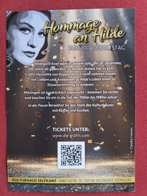 Vorverkauf der Karten (11,50€) unter goertz.maria@gmx.de, 0177-4703127 oder bei Petra´s Shop. Kirchstraße 19